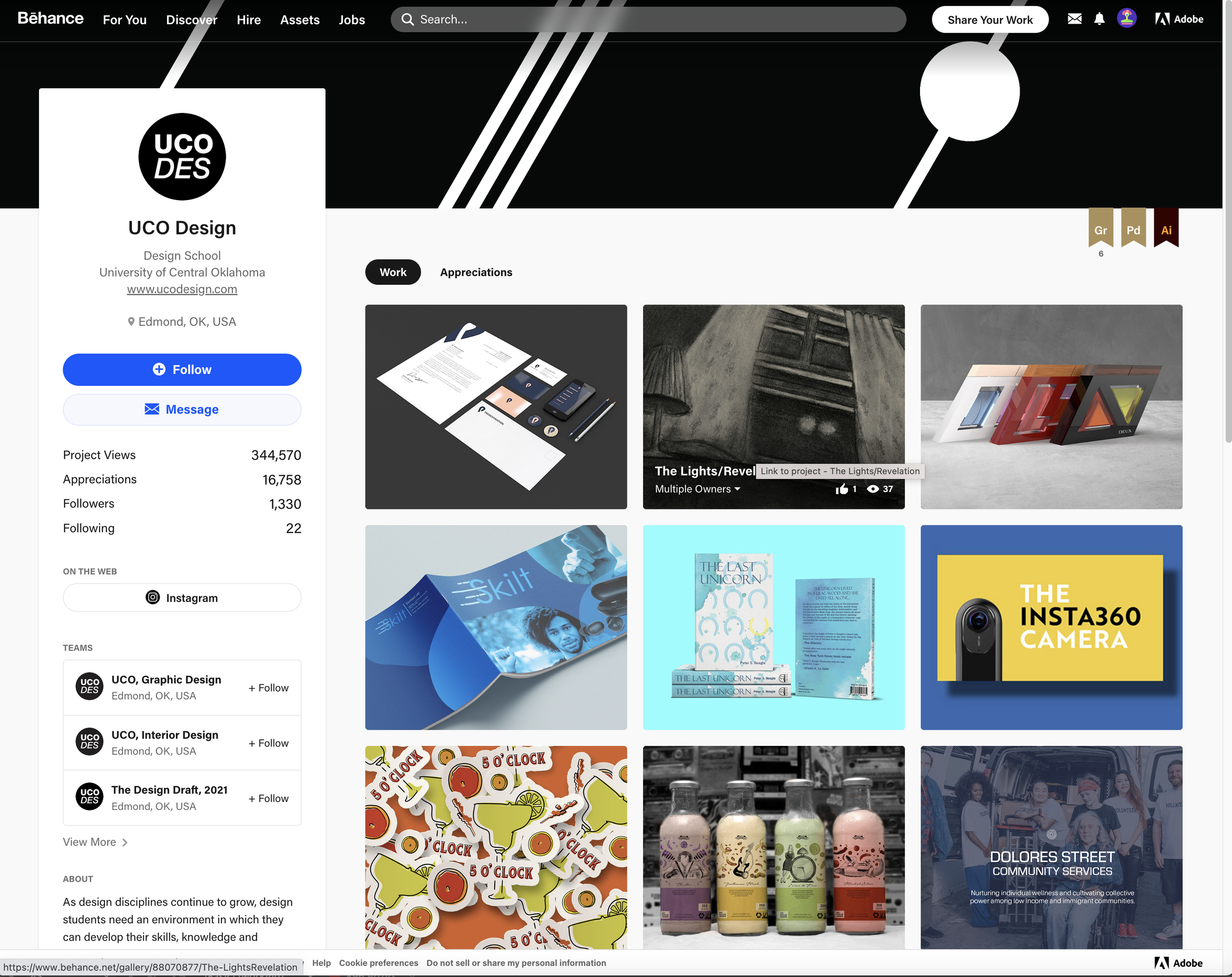 In the fall of 2013 I created the (then) Department (now School) of Design’s Behance portfolio page to raise the visibility of our students and the Department.