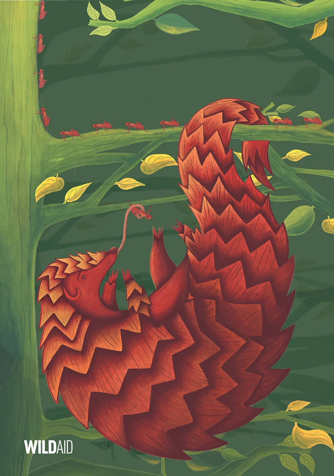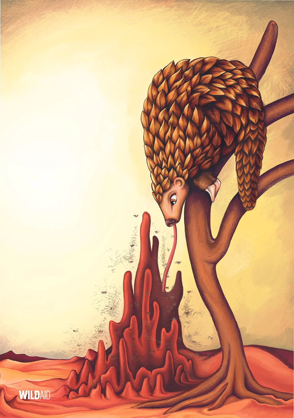 WildAid Africa. Patience the Pangolin. Posters series that will be placed in schools targeting students age 5 and up. Sent without text to allow for translation and use in multiple countries. Let’s get all Jackie Chan on this thing and save some pangolins!